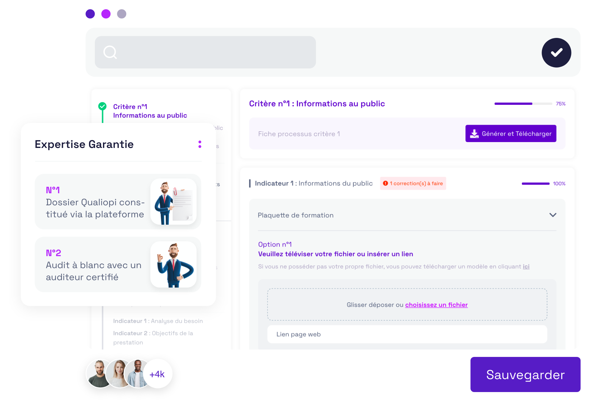 Notre offrons une expérience client simplifiée et dématérialisée. Avec notre outil vous pourrez créer, adapter et améliorer l’ensemble de vos éléments de preuve nécessaires à l’obtention de votre certification Qualiopi.